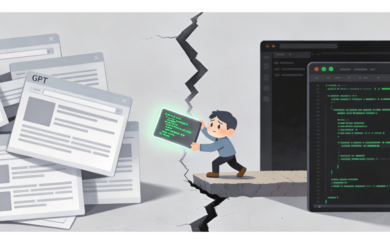 当时的 AI 对我来说,就是一个更“聪明”的搜索引擎。虽然省去了一个个翻看网页的时间,但这种在浏览器和 IDE 之间反复横跳的感觉,总是打断心流。