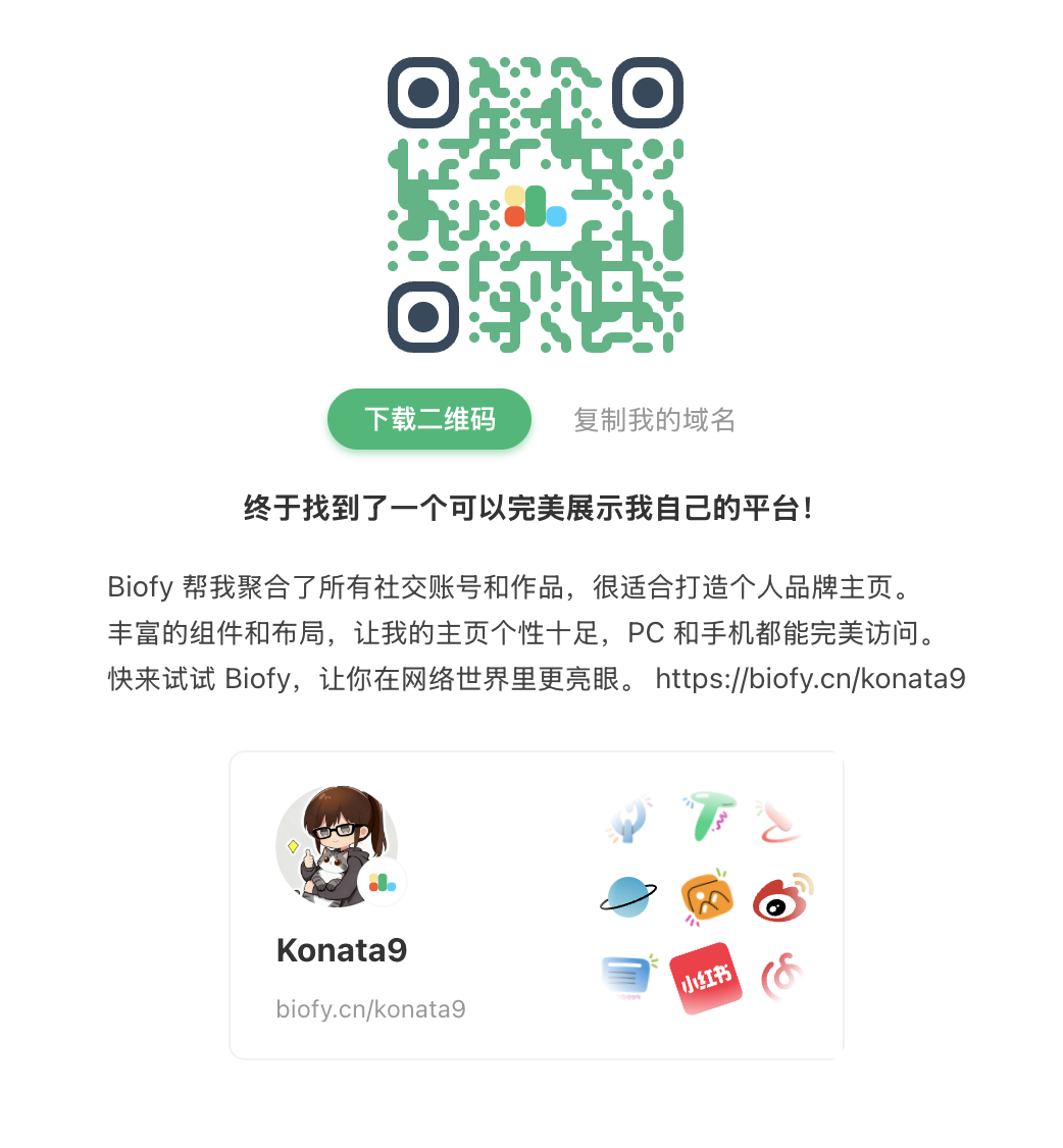 - [2] Biofy - 个性化主页|聚合社交信息|作品展示|数字名片: https://biofy.cn/